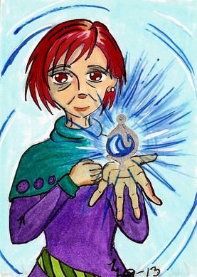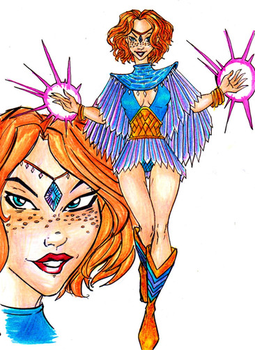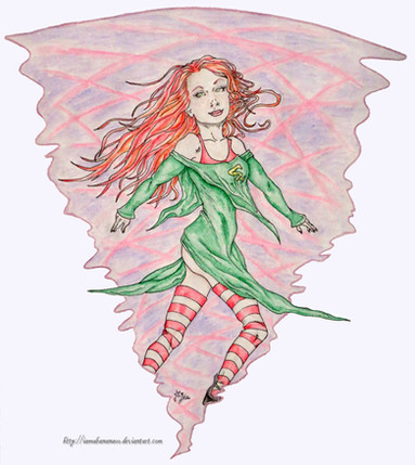 Heroine from a comic book story, The Sorcerer's Eye that I did in college in late 1990s.An aspiring young writer, 24-year-old Emily Kessler went to live with her strange great-grandmother in a beautiful old Victorian-era mansion where she found the weirdest item imaginable: a living human eye enclosed in a glass cube.