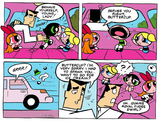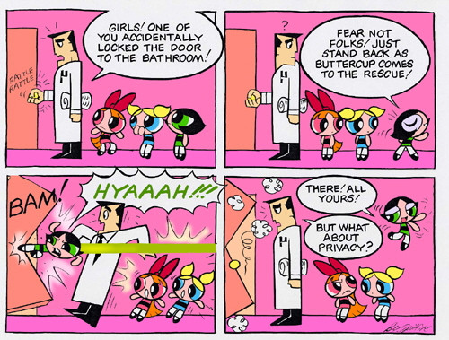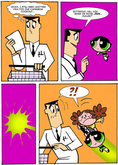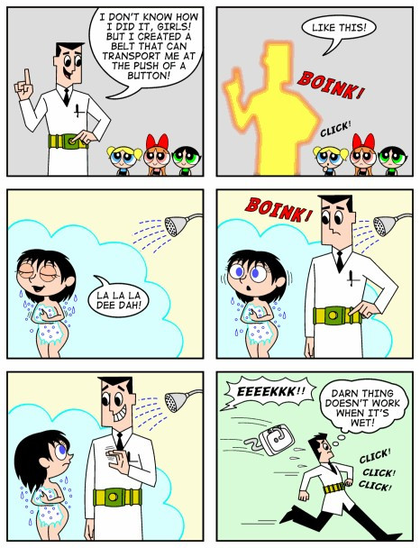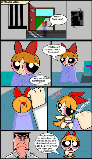 I have a mental picture of Buttercup pushing the professor into the machine.