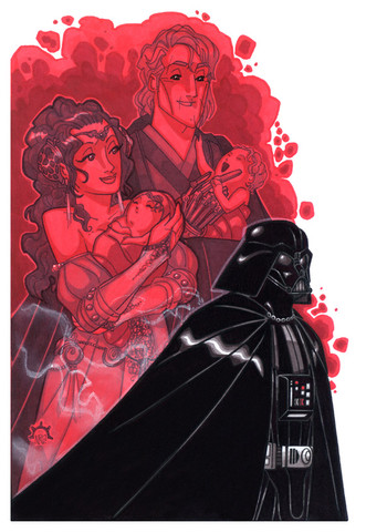 What if Anakin Skywalker survived the whole thing, but his pretty young wife didn't?Done in ink and watercolor paints (it took me SEVERAL years to do that, BTW!)
