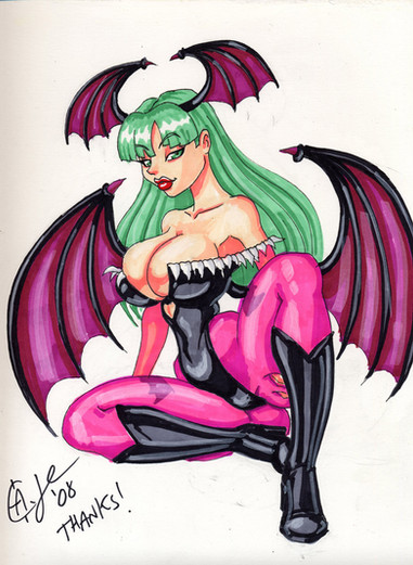 Holy crap, that's the most cartooned Morrigan I've ever seen! X3 freakeh, but cool all the same.