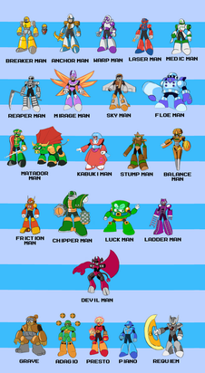 So, made his own series of Robot Masters and I liked them enough to sprite them...well, all but one.Related content