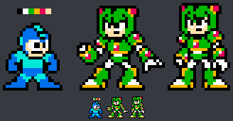 There's a lot of sections where that rule is broken in these sprites. And for the sake of accurate MM style, bodies shouldn't have more than 1 layer and then maybe have another layer to be a face or an orb (or in other cases, a small other random part like Blizzard Man's gloves or Wind Man's chest)
