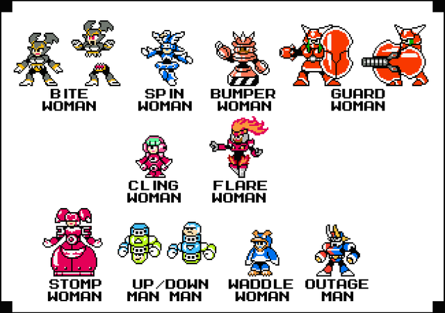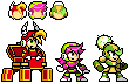 Sprites of the reporters Plumm and Ripot that I've used in Megaman Dissonance.The two debuted in the game Rockman Battle & Chase. Honestly, I always liked her design and felt bad she hasn't appeared in any games since...though Dr. Cossack and Duo haven't either...