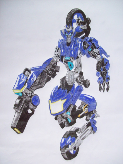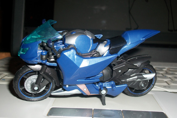 Okay. For those out there who have seen the Transformers: Revenge of the Fallen, you will notice this is one of the Arcee triplettes, or as she is dubbed on the toy package, Chromia. Don't know why, I just love this toy. Like my roomy, I took her and did her up with a little paint. Not sure if you can tell from these shots though.Not finished though, (just like the rest of my work). Still got some work to do on it. When I can find them, I'll be snagging up the so called "Moonracer" and Arcee toys when I see them.