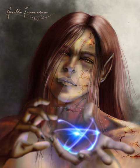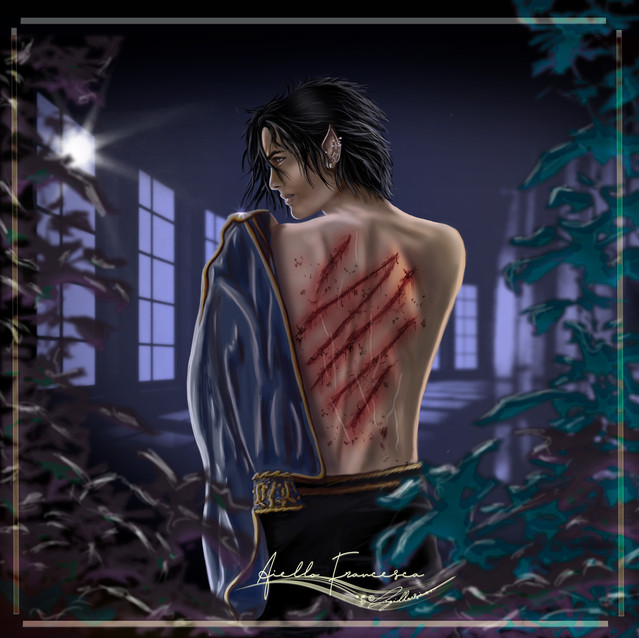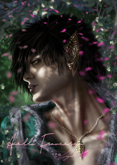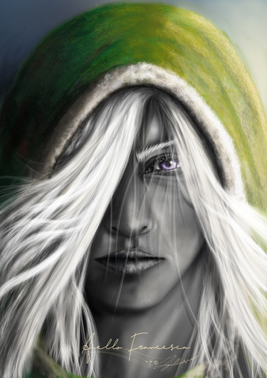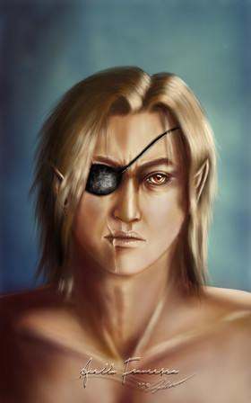 Drawing made with Photoshop, the glass with the rain was then added on top of the drawing once it was finished.The tattoo next to the eye is my initials in Elvish letters, a little nod to the character.😉