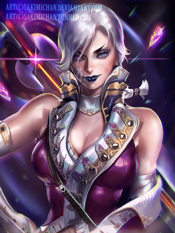 The black/white (and a bit grey, i know, but you get the point ) works out really well with the motif. Great job on the curles in the hair. That too work out well with the black/white. (=