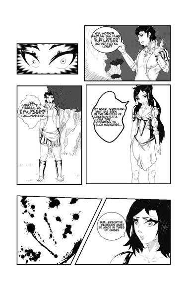 A sample page from my manga, Sacrifice. This is part of the first chapter, or as they will be called 'Rituals', WAR.You ca find my manga at Tapastic ^.^