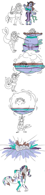 Most of you have seen the new Kenshi design and this was the first time I drew her, the sweater didn't look right to me here, plus covering the top of her pants completely made it look like the bottom didn't make sense. It looked off balanced. I had basically been looking for a new top for her, as I just felt the T-shirt was too simple, and so I tried to come up with some other ideas. Eventually I decided to go with a sweater, but I've never really draw those well, yknow, making them look like sweaters VS long sleeved shirts. This attempt was better, but still not the look I was going for. I also shortened her sleeves alittle to show off her colored hands better, as well as making the part around her next and shoulders and little more wavy and soft instead of looking so stuff.
