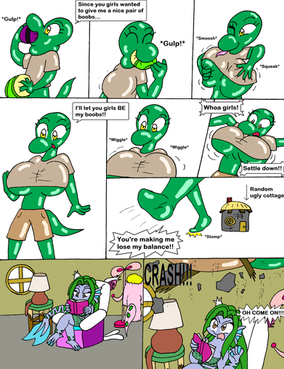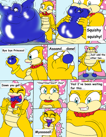 Ok so this is my first time trying to take several pages and put them on top of each other so it looks like one long strip rather than having to submit them all as different files. However it was too big, so I had to figure out how to shrink the image. Now it fits but we'll see how it affects the quality.Anyway, Mindy has fattened Celeste up greatly, but seems to have had her own meal in mind. And unlike Celeste who had gain so much weight from all that food, Mindy's meal doesn't last long at all. But hey, in the end, she helped Celeste lose all that weight ^^