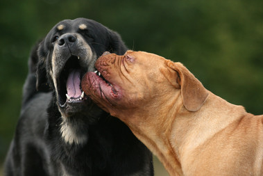 Puppy teeth and adult teeth!Simo and Bea playing happily in the show, even though this picture make it seem raw.