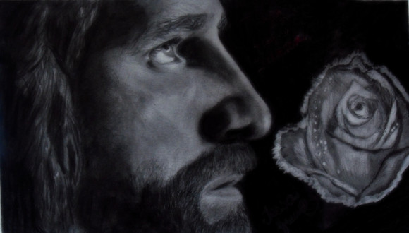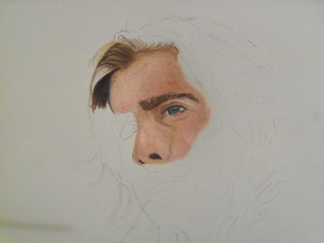 I was going for the traditional style of realism that I usually do but I decided halfway through you know what forget it. That's color is eyes let's throw some random media behind him that I never mixed together before like graphite and pastel powder. A little bit of pink just because.