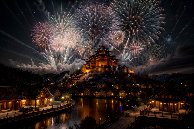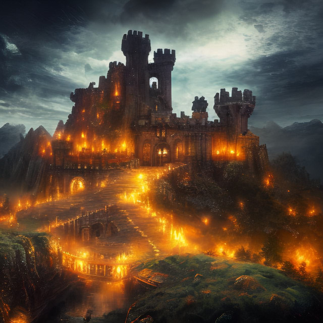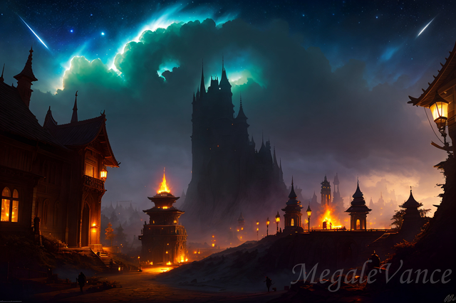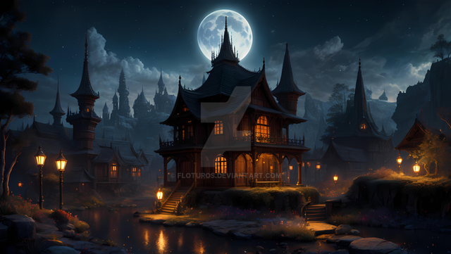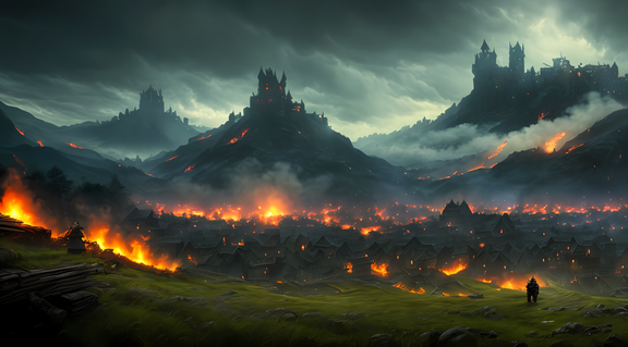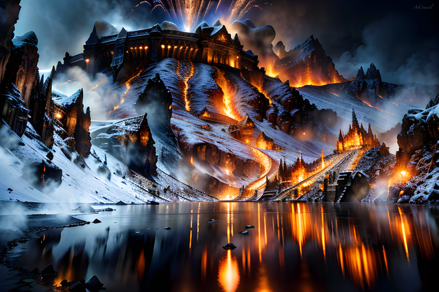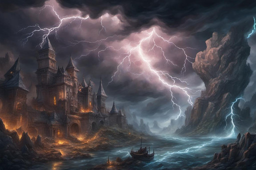 #ai #canal #clouds #dark #gloomy #lightning #mountain #night #storm #village #water #weather #aiart #fire