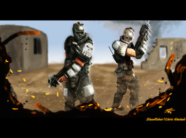 this i great. I love the choice of colors and the way you've used the texture along with the tones. it's sweet. as for constructive critique I sorta like it a bit rough(even though this is hardly rough). it' looks great. although the motive (military or such in general) isn't my favourite the way you did it looks brilliant. let's just say I'd still buy it even though the motive. I like the roughness of the background though. it lets one imagine there's other things than what you might have intended. I like it technically. for short it's just great