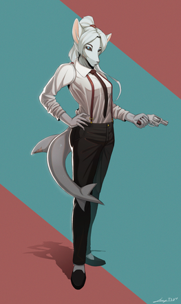 #gun #originalcharacter #aisa #black #blonde #design #fishnets #girl #m1911 #pink #pistol #shirt #sketch #skirt #tie #white #wolf #blackvulp