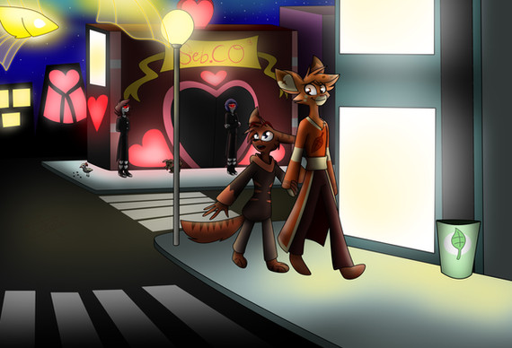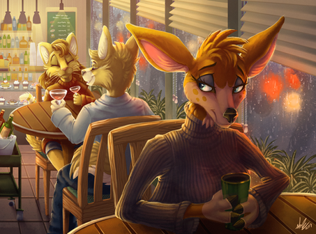 A warming feel and a sweet smell comes from a coffee shop where Veckko (the fox), Ralph (the lion) and Ysa (the wolf) just left.— Hey, Vec — Ralph approaches Veckko. — Lemme talk with you for a sec.