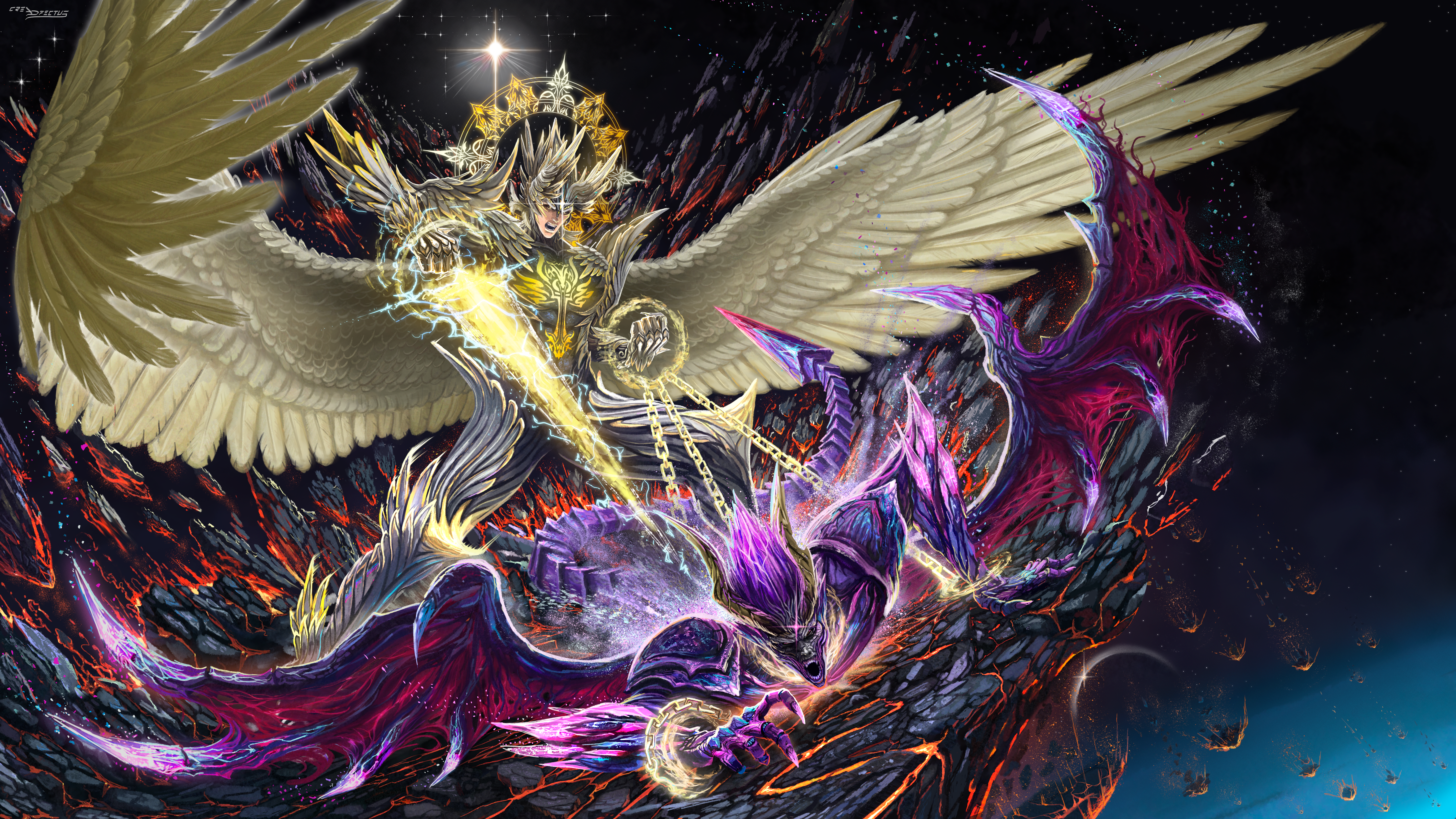 #armor #cell #character #clouds #concept #design #ditgital #dragon #drawing #fanart #fantasy #fighting #flying #game #golden #guardian #illustration #lunar #moon #outlines #sky #staff #stardust #stars #wings #terraria #art