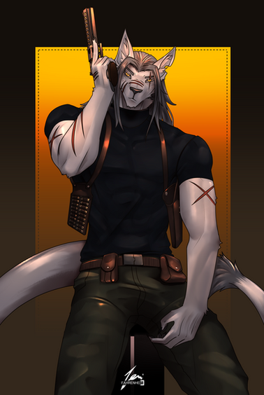 #fox #desert #eagle #gesture #muscles #pants #pistol #sketch #back #veckko #blackvulp