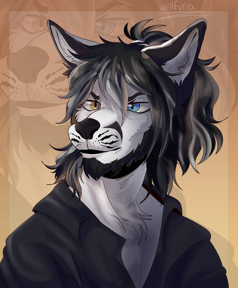 #anthro #brown #character #commission #design #digital #drawing #earrings #gray #hair #hoodie #illustration #jacket #jeans #oc #portrait #scar #white #wolf #art
