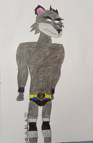 For those who are wondering I look without my superhero attire and in just a speedo in my super bulky state aka Tank Mode? Well here it is. I sure look like a huge hunky wolf, don't I? Plus, the dark purple color is my favorite color.Software: Paint 3D