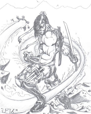This pic went nowhere. After sever attempts of a background my wife found me a refrence, and it still dones't fit. I don't care much though, I gave up on it, as well as had the attention span of a godfish towards the end. This isn't one of my favorites. I hardly cleaned up the lineart as well. That's alright, just a filler to keep me preoccupied.I think i'll start loading all my laine art and other junk in scraps, I never do....makes you think I'm perfect eh? ^.~!!! Any ways have other things to do now, peace!