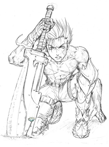 Believe it or not, I drew a picture like this last week. Its of a dragon woman, holding a large sword behind her back, in almost the same position. She even has a tattoo on her chest. o.O Schpooky... Mine looks better though and swords rock so much harder!! Even in milk. :: nods:: Keep up the good work though. XD Youre following in my foot-steps just fine. (just kidding, except all the critique parts, so dont cry over this :: snickers: