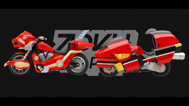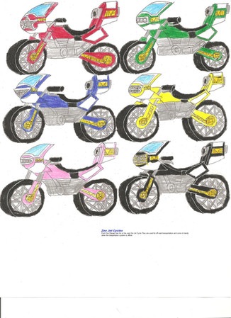 Now here in this pic we have 12 variants of the main Bike (Remember, I did state that the bright red parts are not part of the main colors of the EC) in the colors of the 12 rangers. The reason for this is being that depending on who summoned an EC, The color of the ranger who summoned it will appear on the main bike