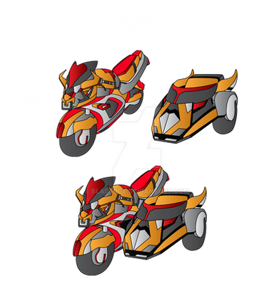 Meet the EtoChaser, A Bull-themed motorbike that is summoned by the Ox Medal while in an EtoBuster (Yes, you read right...A Bike that is summoned by a gun). Using a Suzuki RF as its base model, the EC can also be summoned with an optional Sidecar for a passenger if nessisary. While by itself, the main Bike can fire lasers from the bull's "Eyes"