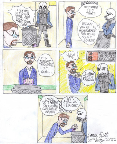Wow, that's a lot of stuff going on in one picture. Next time you want to draw a huge group picture like this, feel free to borrow one of the giant sheets of paper I have in the sketchbook downstairs. (Not that you seemed to need it for this picture, of course.) Also, you can borrow my inking pens if you'd like.