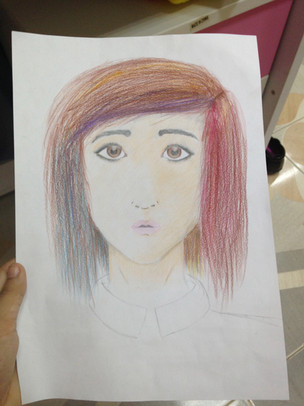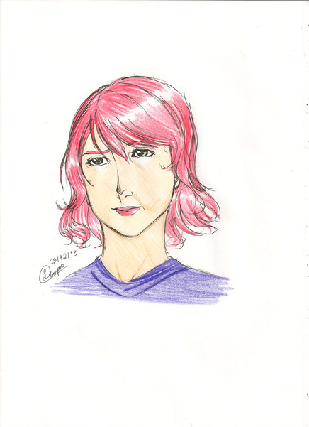 This drawing has existed in part for a LOOOOOONG time. Way back after my first art class session, I sketched just the bare facial guidelines as my first practice for drawing faces. During my second class session, while people were fooling around with a skeleton model for some reason, I was working on the eyes. I finished the drawing quite a while after classes ended, and then MUUUCH later I tried coloring it in, since I had no practice with colored pencils.It didn't turn out so great, but I like the hair, at least, and I haven't uploaded anything in a long time. So I'm gonna upload it! XD