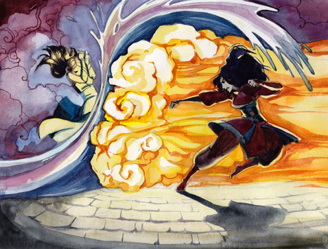 Yet another Acrylic painting done for my color theory class at the wonderful Art institute. We were to select a picture and paint 2 version with color and a grayscale, and use objects in the pic to show distance. Since my [link] did soo well by my teacher, on top of the difficulty that this work of mine posed, she was happy with me doing just the one. I literally just doodled the sketch for this in class and she loved it soo much that she ordered me to do it, dispite me wanting to do something less busy. Glad I followed orders this time...Soooo I'm sure most of you should know who this is. Just The Toph Bei Fong, being her usual cute and cuddlie self...Hope I captured that right... what do you all think?