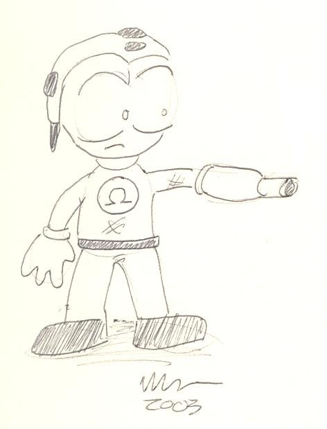 It's Vectorman! Anyone who has ever had a Sega Genesis should know who this is. If not... I will make sure you know him by the time you're done commenting.Vectorman is copyright by Sega