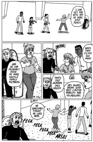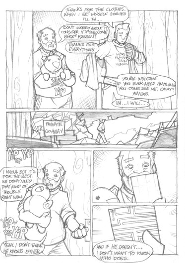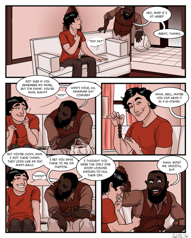 I don't know if this was intentional, but I like that the 'thinking back to nightly activities' panels are all tiny and constricted. It may be the symbolism nut in me, but it really kinda drives home how those unbidden thoughts, even now are something he struggles to keep contained.