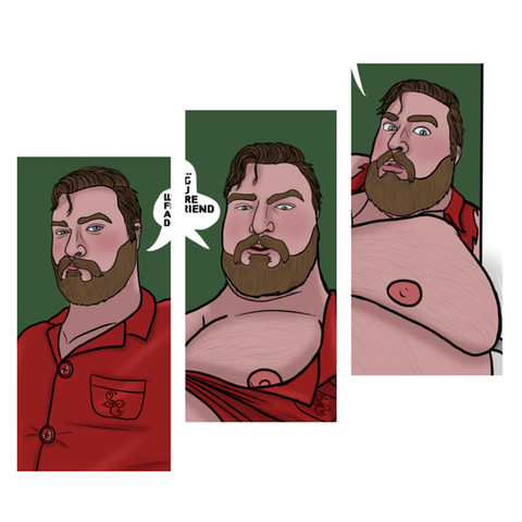 Josiah's about to do a bit of anatomy practice on himself.
