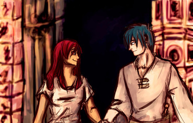Today’s Micaela’s - approvesport 's birthday so i did a thing based off herGladiators AU . Too bad Levy was the first one to get lovestruck hoho.