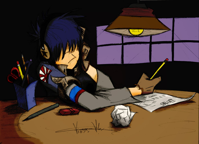Don't take me wrong o.o lovely drawing. But I thought 2-D was born with blue hair?