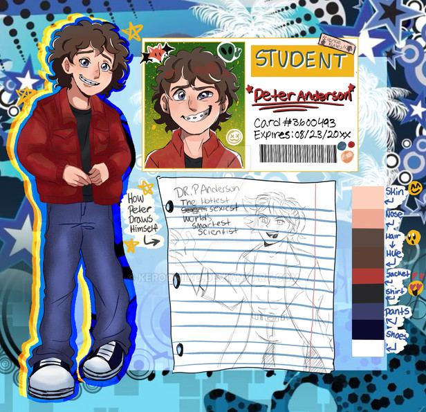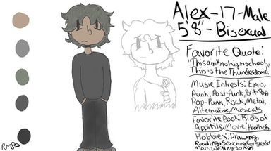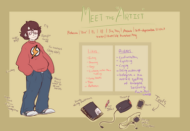 Behold, our main character Riley! Heβs just your average teenager, nothing to see here folks.(Also, sorry if the text is blurry?? I drew it on an tablet and transferred it and I donβt know how things work)