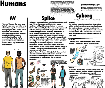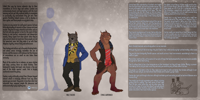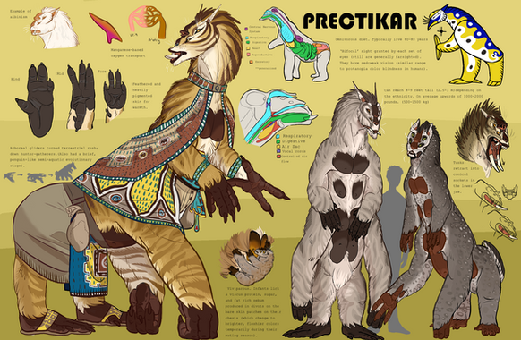 Prectians are a species of mammal-like humanoids that were the last to be conquered by the Cerest, and the ones that gave them the most fight. Because of this, they have a reputation for being brutish warriors (which isn't helped by their appearance and often violent customs). They are much more complex than they seem, however, and nearly all clans are characterized by their intense devotion to and respect of all living things. They live in tight-knit familial groups and are naturally territorial, forming deep bonds with the peopel and places they interact with. Most Prectians on our current planet have either been drafted into the Cerest military or emigrated from their original territory around the Emperial crash site to avoid this fate. They are also commonly employed for manual labor, especially in the many fringe areas where technology is scarce. Like all of the other CE species that aren't Cerest, they have no major say in the government, though they do have a notable ally in the muttreazik (another group we'll talk about later) who also share their respect for life.fun fact: they are very soft