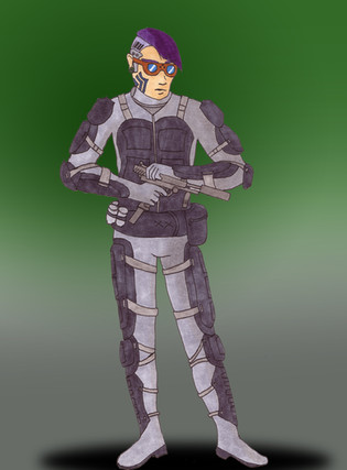 The new Mk 1 Defender Armour is a vast improvement over the prototype model that Jared used previously. The Z-Neutrino energy projector, which was capable of molecular disintegration has been replaced by a shoulder mounted missile launcher armed with 5 Particle Impulse missiles. The warheads cause localised gravitational stresses at the impact point which ignore armour.