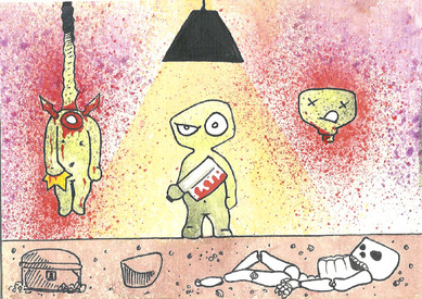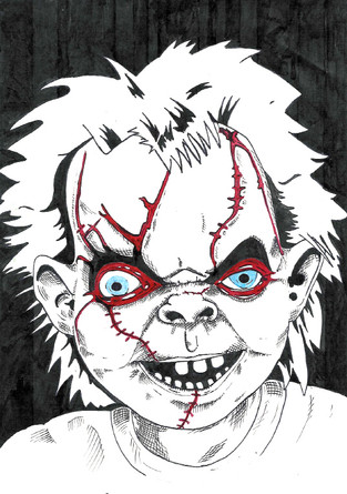 irrk = bother....I know you meant for the colors to be red and blue, but it still kinda bothers me when people get the colors wrong (like when people think the colors are red and black). It's still an awesome piece and you managed to get Freddy's expression perfect. Also the shadowing makes it more sinister. Very nice work.
