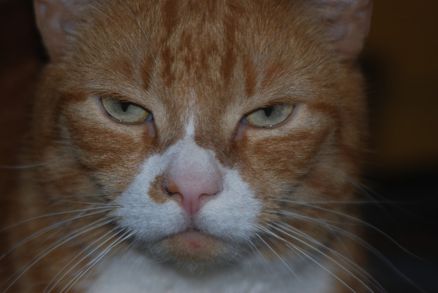 Very beautiful photograph; I especially like the color tones and the lightning. The shallow DOF makes the cat pop right out of the picture. And I like the cat of course