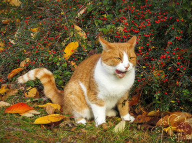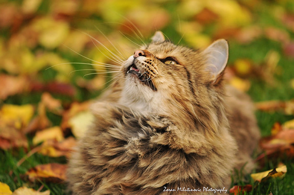 i love how similar the cat's coat is to the leaves... cool shot