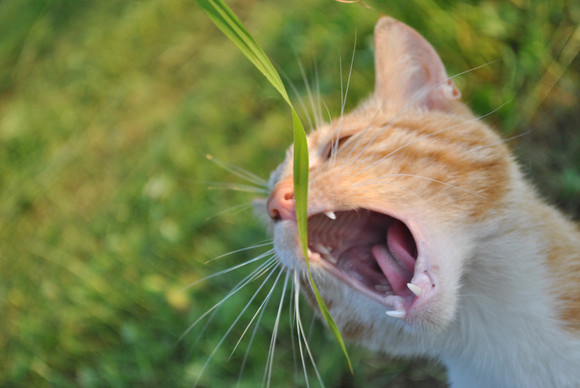 Lol. What an adorable kitty! I guess he tried to bite off more of the twig than he could chew ><
