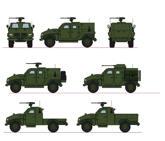 A quick vehicle that was fun to make. It's basically a combination of a GAZ Tigr, a British Army Land Rover, an HMMWV, and a bit of Mowag Eagle III.Related content