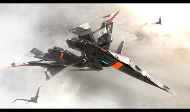 >persective, complex shading and realistic clouds and vapor trails