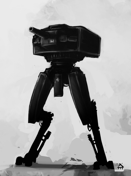 I start with a basic idea or concept, for example in this case I knew I wanted two things: A large mech/spider tank patrolling an urban area, and some kind of wall or enclosure. I came up with the setup of the scene taking place in a sort of post-war/future Berlin after doing some simple sketching and adding urban camouflage to the tanks in the scene. After that, I gathered and looked at as many resources I could of the West side of the Berlin wall and looked at all the various images that I could find for the houses and buildings that would be there and tried my best to replicate them. Once I get the background going and the scene starts to become easier to visualize, I start adding the small details and bulk of the objects/things in it and try to get the coloring and atmosphere of the scene to feel right until I eventually am satisfied with the final product.