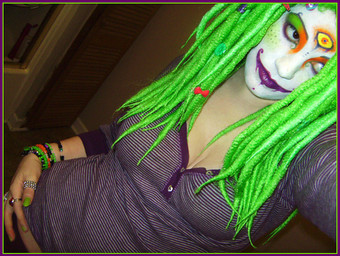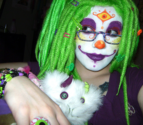 See; I'm afraid of those circus clowns; like Bozo and such.. But I really like how you do your makeup, and the hair, it actually makes me like clowns a lot more. I actually think this is really pretty, but I just love bright colours, I suppose.. Either or, I definitely wouldn't be afraid if I saw you come to my party! DD