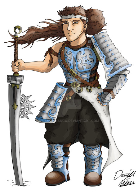 well, to be fair a raised leg on a rock can be hard to draw, and the right arm armor is a bit off. I like the circle in the triangle, but then again I like symbols like that. Also what did you get to make that grass.