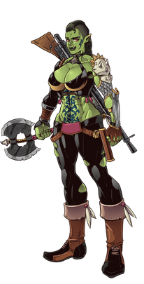 Its not everyday you get to see an adorable half-orc ranger!Β She's great, nice job!