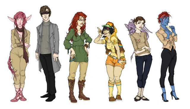 About this image: A nice reminder to myself why I don't do this comic in colour. Hoooly cow I hate colouring things >.O These are flat colours, but sort of a reference of what colours I think the outfits would be. I'm amused that almost all the X-men in the comic so far have been girls. We've had Scott and the Professor, but neither of them were in "winter" clothes, so I didn't include them in this. We've also got another dude-X-man coming up in about... two pages, but he will ALSO not be in winter clothes, so- just X-chicks. XD