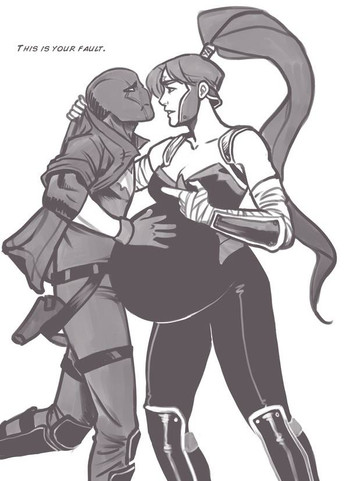 He's such a hands on parent. I like that this is apparently the first time he's hearing of/noticed the pregnancy XD